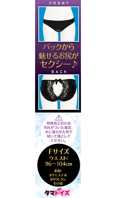 可愛らしく上品なレース柄のオープンバックショーツ。ハイクオリティな光沢素材使用だからピチピチの着心地に感度もUP。