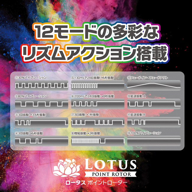 女性の意見を取り入れ、重視して開発されたシンプルポイントローター!外観は可愛らしい蓮の蕾をデザインに取り入れ、激振動なのにしびれにくく、そして静音設計なので深夜の使用も安心!生活防水なので使用後のお手入れも簡単です。ボタン1つで12モードの切れ替えができる簡単操作も魅力!USB式充電採用で電池不要で繰り返し使えて経済的です。