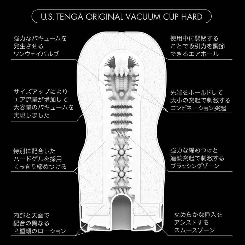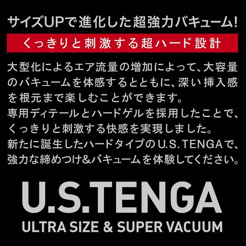 ウルトラサイズによって、吸引する空気が増え、大容量バキュームを実現したU.S. TENGA。 ディテールの進化とともに、3種類のラインナップに完全リニューアルしました。 スーパーバキュームと、おおらかな刺激によるゆったりロングプレイをお楽しみいただけます。
