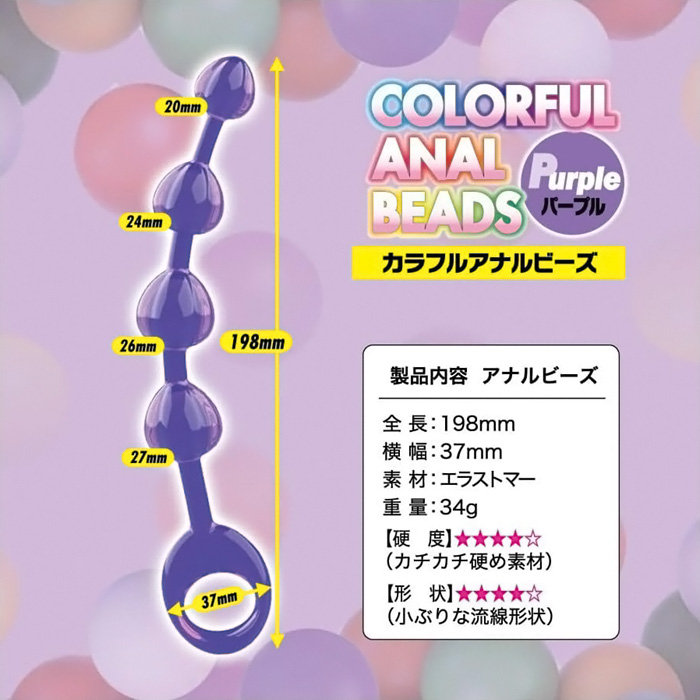 ポップでキュートなミニサイズのアナルビーズが新登場! かわいいハート形状が、大きさ順に4つ連なるアナルビーズです。 先端から20ミリ、24ミリ、26ミリ、27ミリと 奥に行くほど太くなるので、快感のステップを楽しめます。 さらに、本体形状として縦縞くぼみがあり、空気や液体の通り道となり挿入心地をサポート。 最奥部は引っ張りやすい輪っか付き。 ビギナーの方にもぴったりな4連モデルで、 スケルトンでカラフルなボディカラーが精神的な抵抗感を低減させます。 本体素材には、カチカチ硬めなエラストマー素材で、インパクトのある肉感を再現しました。 この硬さが、強い存在感を放ちます。あなたを夢中にさせる快感素材と、 ビギナーにもオススメできるベーシックな型状で、狙いを外さない鉄板のアナルビーズです。