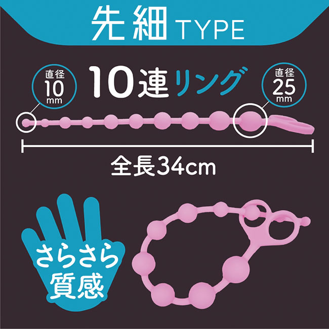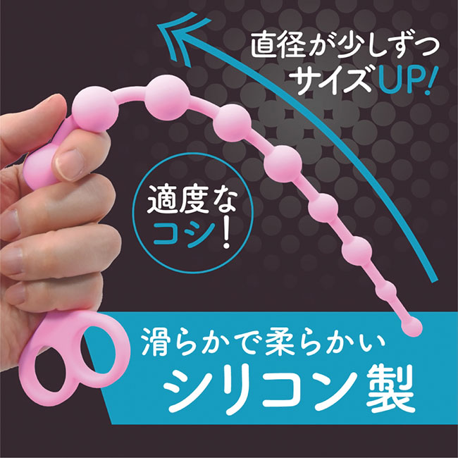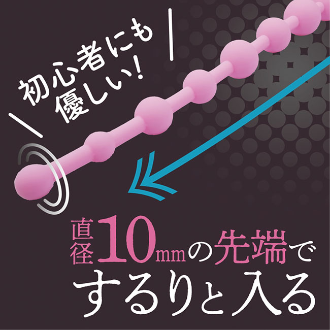 先端部10mmから25mmの9個のシリコンビーズが連続に襲ってくる初心者用。まずはここからメス化TRY!取っ手部のサイズは55mm全長340mmと全てシリコン素材の為、柔らかく丸洗いも出来て清潔に保っていただけます◎パッケージサイズ:42.5×8.0×2.5cm本体サイズ:34.0×5.5×2.5cm