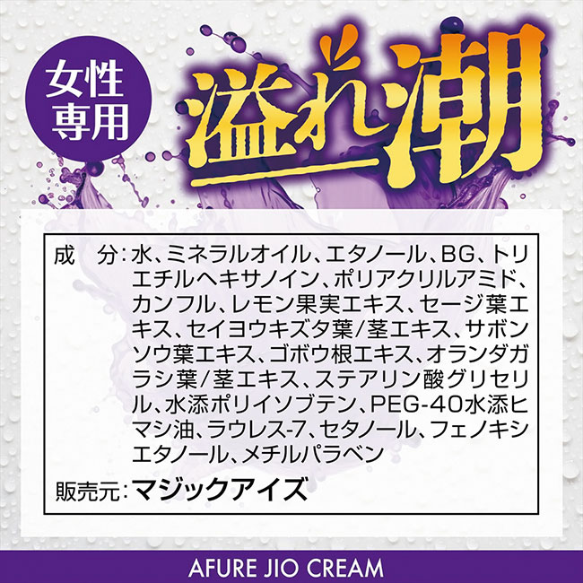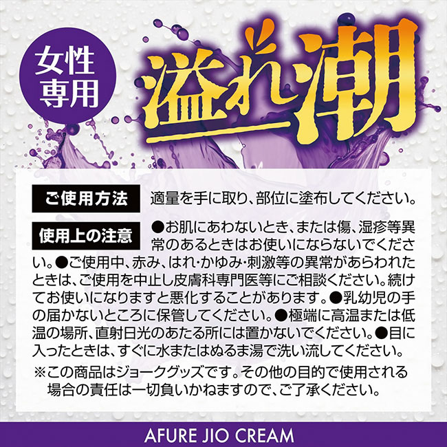 女性専用クリーム。ヒアルロン酸と天然オイルが活気と引き出し、カンフルが官能を誘う。純日本製の潮が溢れる、溢れ潮クリームは1人でも複数人でもご使用いただけます。パッケージサイズ:7.5×5.8×2.6cm本体サイズ:2.6×3.6×3.6cm 内容量:10g