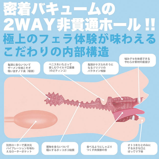 肉食系AV女優【石原希望】!本人の完全監修によって、肉食フェイスから、つよつよのノドまでをリアル再現。500gクラスの肉厚密着感と人工粘膜による2層構造、そして趣向を凝らした口腔ギミックにより【石原希望】のむさぼるような貪欲フェラを体感できるのです。電動の快感を楽しみたい人には、ローターポケットを標準装備◎【非貫通/ローション付】パッケージサイズ:19.0×10.5×10.5cm本体サイズ:全長18.0×全幅9.2cm(顔部分) 重量:500g
