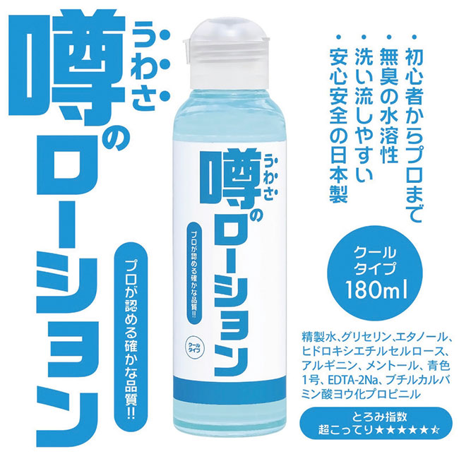 これが業界評判の冷感ローション!刺激たっぷりの冷たさと、がっつり濃いめのテクスチャー!L-アルギニン配合で、男性の活力と、女性の美しさにアプローチ!クチコミ上位ローションをベースに再構成した、実用重視のレジェンド級ローション。メントールのクールな高刺激を楽しめ、とりわけ夏なら心とペニスがシャキッと覚醒☆濃いめの粘度で、糸引きは控えめ。パッケージサイズ:15.0×4.6×4.6cm内容量:180ml