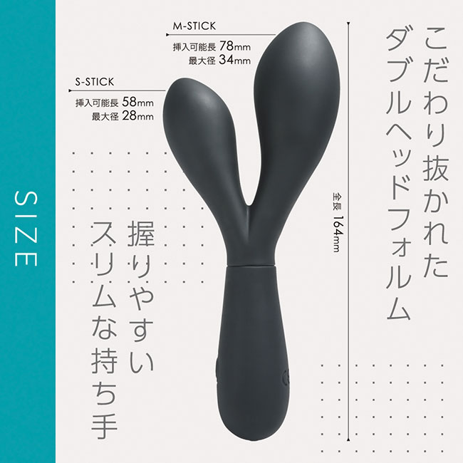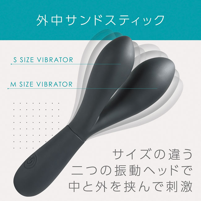 大小、サイズの異なる二つの挿入部が配置されたスティックバイブです。