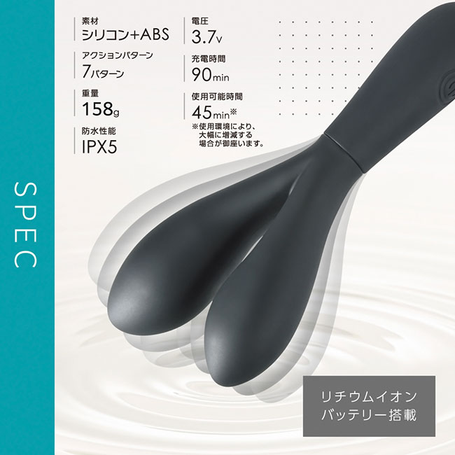 IPX5の防水性能だからしっかり洗えて衛生的に何度も使用可能です。 3.7Vリチウムイオンバッテリー搭載で90分で満充電、最大45分の連続使用が可能です。(※使用環境により大幅に増減します。)