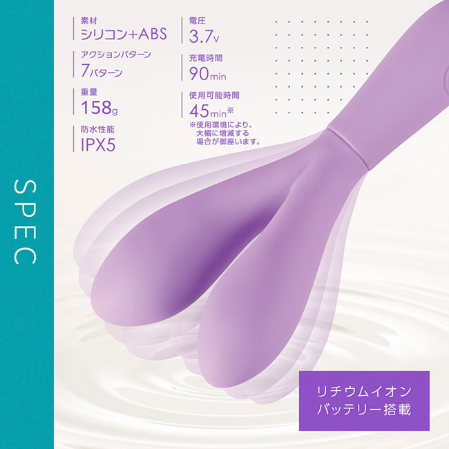 IPX5の防水性能だからしっかり洗えて衛生的に何度も使用可能です。 3.7Vリチウムイオンバッテリー搭載で90分で満充電、最大45分の連続使用が可能です。(※使用環境により大幅に増減します。)