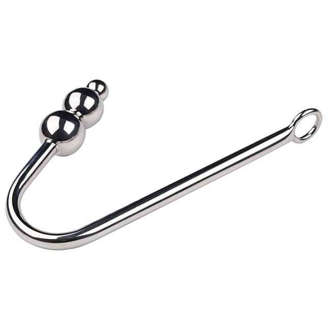 強烈な刺激と見た目の凌辱感が高いのがア○ルフックです。 挿入するだけでピンポイントに刺激を与え、金属の硬く冷たい感触が何とも言えない快感を生みます。 玉が3個付いている衝撃の形状で同時刺激が強烈に楽しめるア○ルフックです。 首輪とチェーンで繋げば、ア○ルフックの重さで首輪も引っ張られるといった凌辱プレイや立った状態で吊り上げて使用すれば、吊り上げる刺激、緩めた時にフックが抜けない様にア○ルを締めさせる調教も出来ます。