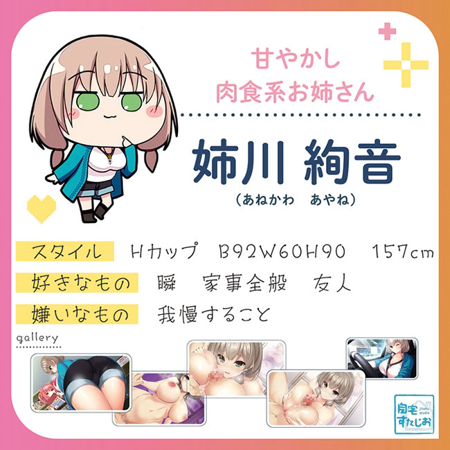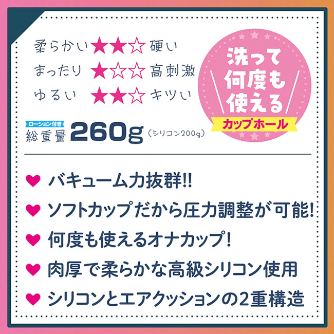 【自宅すたじお リアルエロゲシチュエーション!DT公式コラボ商品】新感覚!洗って何度でも使える、ソフトカップタイプのカップホールです。 ソフトカップだから圧力調整が可能!調整可能なエアバルブでバキューム力も抜群!シリコンとエアクッションの2重構造で肉厚柔らかな高級シリコンを使用。シリコン部分を外して洗えば何度でも使えます。衛生的で安心な別途ローション付属!まるでリアルエロゲの世界に入り込んだかのような体験を求めるなら、この姉川絢音のオナホールを選んでおけば間違いなし!商品サイズ:16.5×Φ7cm重量:260g付属品:ローション