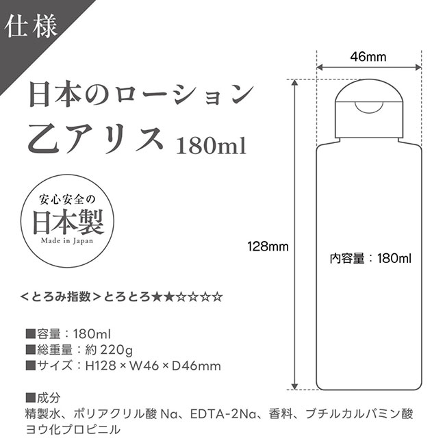 金髪ギャル系AV女優【乙アリス】のエロス液を、質感から糸引きまでリアルに再現!「日本の名器」をはじめ各種グッズとのシンクロ性が抜群!【乙アリス】のとめどなくあふれる愛液を収録現場でリサーチし、色や質感、匂いまでもローションに反映。長く潤いが続くので、まったりプレイにもぴったり。いやらしい糸引きにもかかわらず、べたつかない絶妙なテクスチャ。パッケージサイズ:H15×W4.6×D4.6cm内容量:180ml